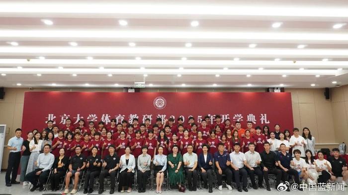 【#北大体育教研部主任夸王楚钦#】9月3日下午,北京大学体育教研部2025年开学典礼在五四体育中心205会议室隆重举行。值得一提的是,本届研究生新生中还有一位备受瞩目的特别成员——国家队现役运动员、乒乓球项目奥运冠军@王楚钦___ 。体育教研部主任钱俊伟以视频方式致辞,他表示乒乓球奥运冠军王楚钦的加入进一步提升了北大体育的声誉。#王楚钦北大新生合照#